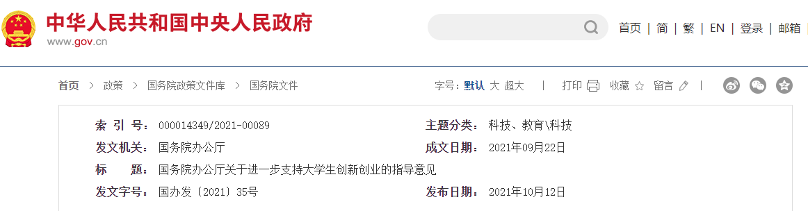 纵深推进大众创业万众创新是深入实施创新驱动发展战略的重要支撑,大学生是大众创业万众创新的生力军,支持大学生创新创业具有重要意义。近年来,越来越多的大学生投身创新创业实践,但也面临融资难、经验少、服务不到位等问题。为提升大学生创新创业能力、增强创新活力,进一步支持大学生创新创业,经国务院同意,现提出以下意见。