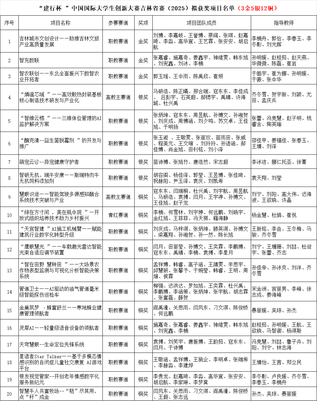 “建行杯”中国国际大学生创新大赛(2025)吉林省赛成绩喜报
